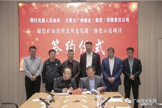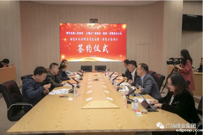 鄂托克旗政府办、发改委、工科局、能源局、生态环境分局、自然资源局、应急管理局、林草局、水利局、棋盘井镇、广纳集团副总经理翟林贵、总工程师张罡伟等领导出席签约仪式