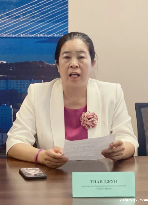 绥芬河市女企业家协会会长田君向俄方出席人员介绍了黑龙江省地理位置、口岸通道以及各行业体系方面的突出优势,希望俄方企业可以到黑龙江省投资兴业,达成战略合作、实现互惠共赢。