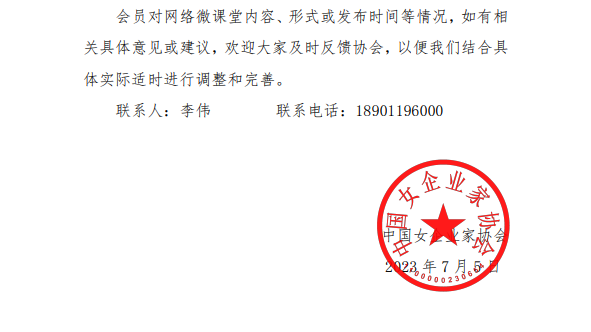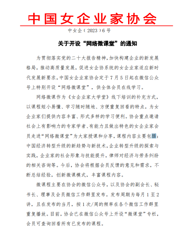 关于开设“网络微课堂”的通知 (中女企字﹝2023﹞6 号)