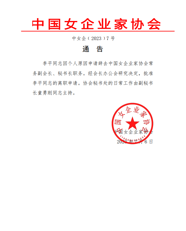通 告(中女企字【2023】7 号)